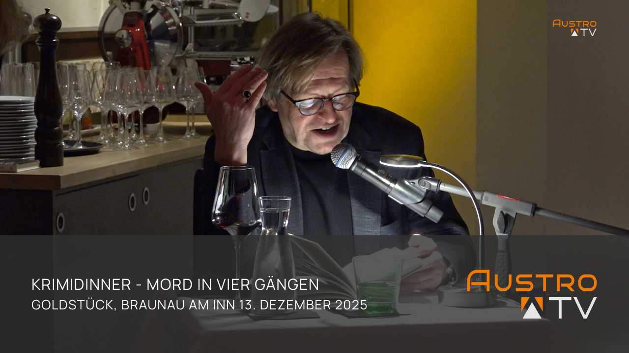 Beim Krimidinner mit Klaus Ranzenberger und seinem Burgheimkrimi verwandelte sich das Goldstück Braunau am Inn in eine Bühne voller Rätsel, pointiertem Humor und unerwarteter Wendungen. 🔎🍽️ Zwischen den Gängen wurde gelacht, mitgefiebert und kräftig kombiniert – ein Abend, der das Publikum auf eine ebenso kriminalistische wie charmante Reise mitnahm.