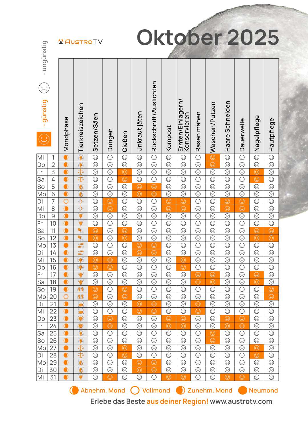 Mondkalender Oktober 2025