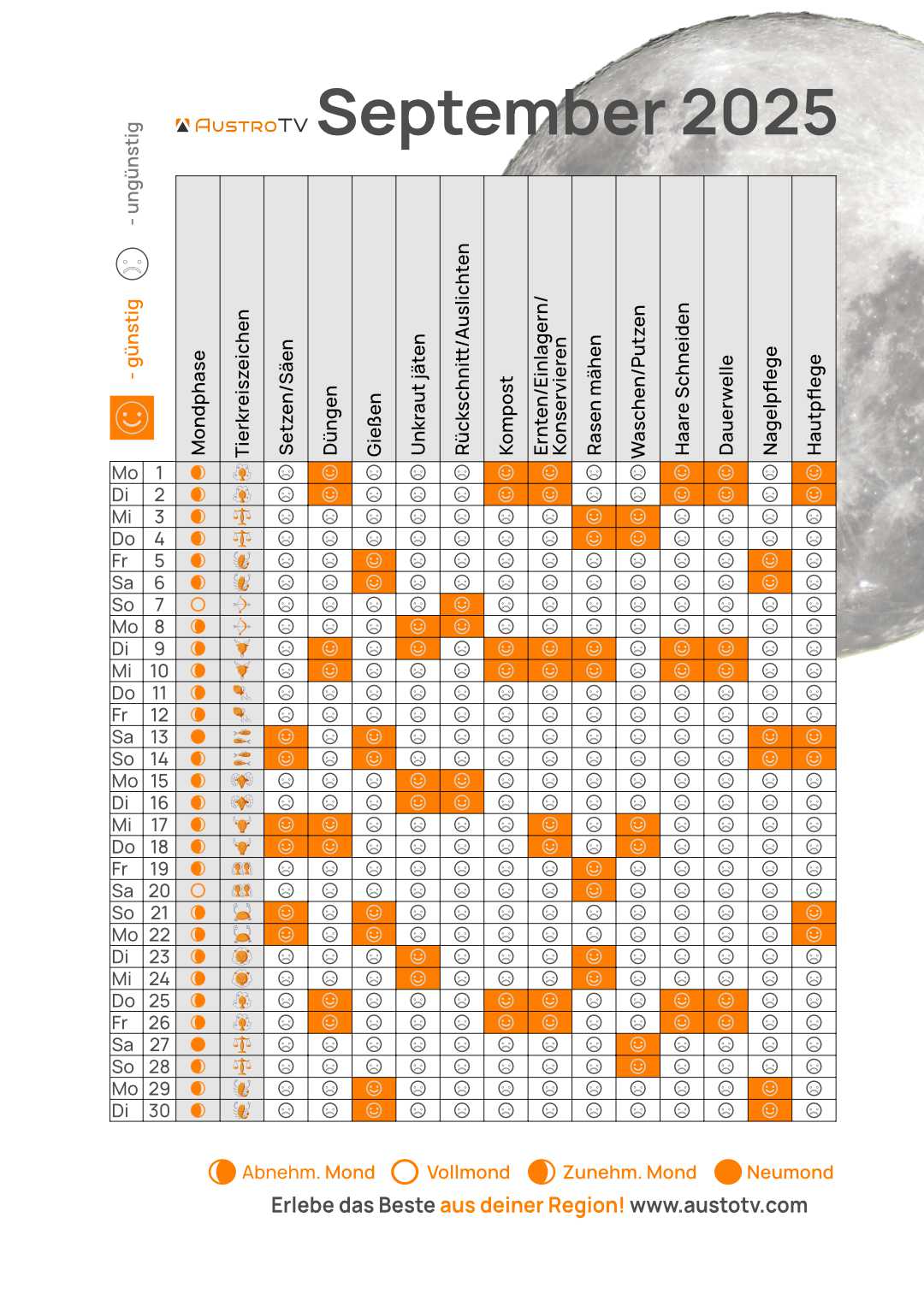 ➡️ Entdecke jetzt den Mondkalender für September 2025 und finde heraus, wie du die Sommerenergie optimal nutzt.