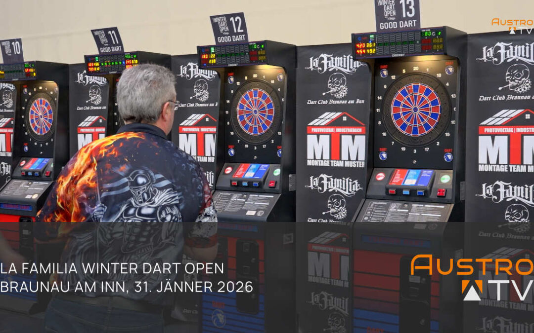 Das LA Familia – Winter Dart Open 2026 fand von Freitag, 30. Januar bis Samstag, 31. Januar 2026 in der Bezirkssporthalle Braunau statt und zog Freunde des Dartsports aus der Region und darüber hinaus an.